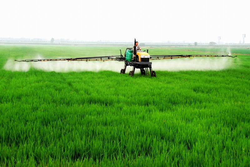 近日,家庭农场在用水稻植保机防治病虫害。连日来,安徽农垦龙亢农场全力以赴抓好水稻田管,农场及时向家庭农场发布水稻长势和病虫害情况,农技人员深入田间指导。目前,龙亢农场2.2万亩水稻长势喜人。(安徽日报2015年8月12日头版,通讯员李峰摄)