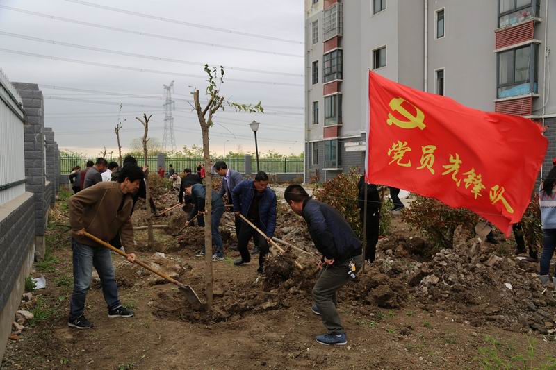 植树现场,场领导率先挥镐扬锹,大家闻讯而动,排线、松土、扶树、填土,分工协作,一气呵成。全体同志干劲十足,配合默契,种好一棵树后,迅速转移阵地再栽另一棵,现场热闹非凡、秩序井然。经过一上午的义务劳动,共栽下高杆女贞、红叶石楠等景观苗木200余株。一株株苗木迎风挺立,为职工花园小区新增了丛丛绿意。
