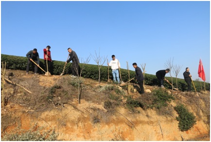 3月13日,敬亭山茶场公司开展植树造林主题党日活动,栽植紫薇和樱花160余棵。(垦宣)
