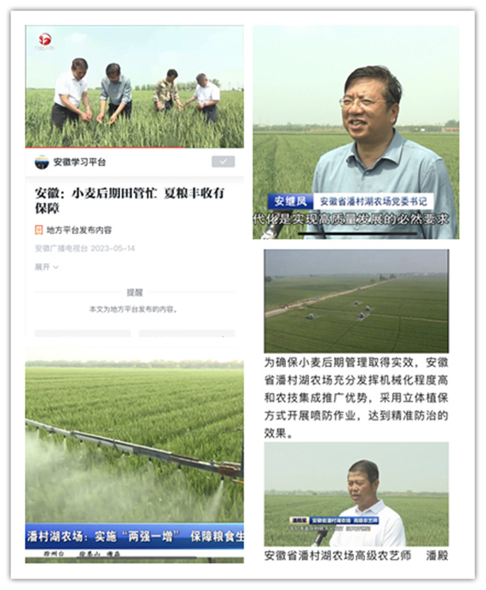《中国农垦》杂志、中国农垦信息网、学习强国学习平台、滁州电视台、《滁州日报》等各级主流媒体也于近期分别以《安徽农垦:“两强一增”在行动》《潘村湖农场:实施“两强一增”保障粮食生产》《聚力“两强一增” 充盈“皖东粮仓”》为题就潘村湖农场抓好小麦生长中后期田间管理,切实扛牢粮食安全政治责任的工作动态进行了密集报道。(撰稿:蒋俊 审稿:王阳春)