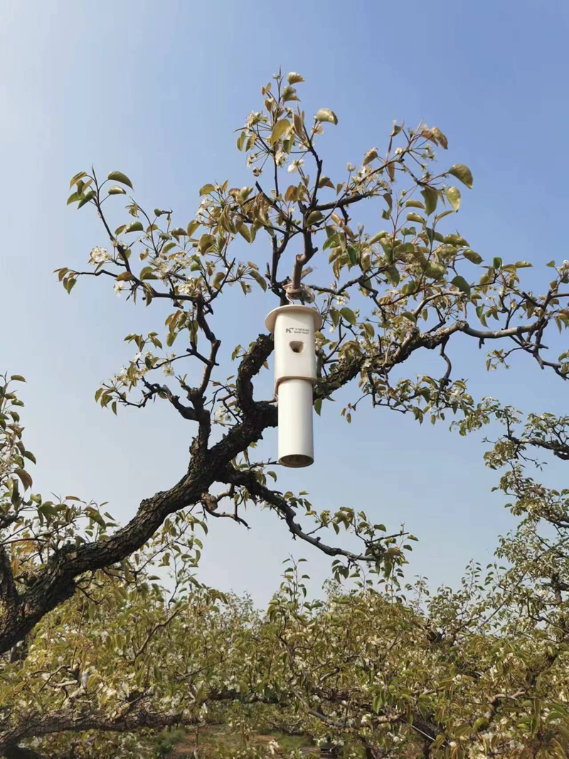 见才喜是安徽农垦集团砀山果园场公司梨农,他的20亩梨园位于砀山果园场公司与砀山县共建的1000亩“砀山酥梨第一园”内。他和砀山果园场工作人员带领记者一一见识了梨园“新武器”。