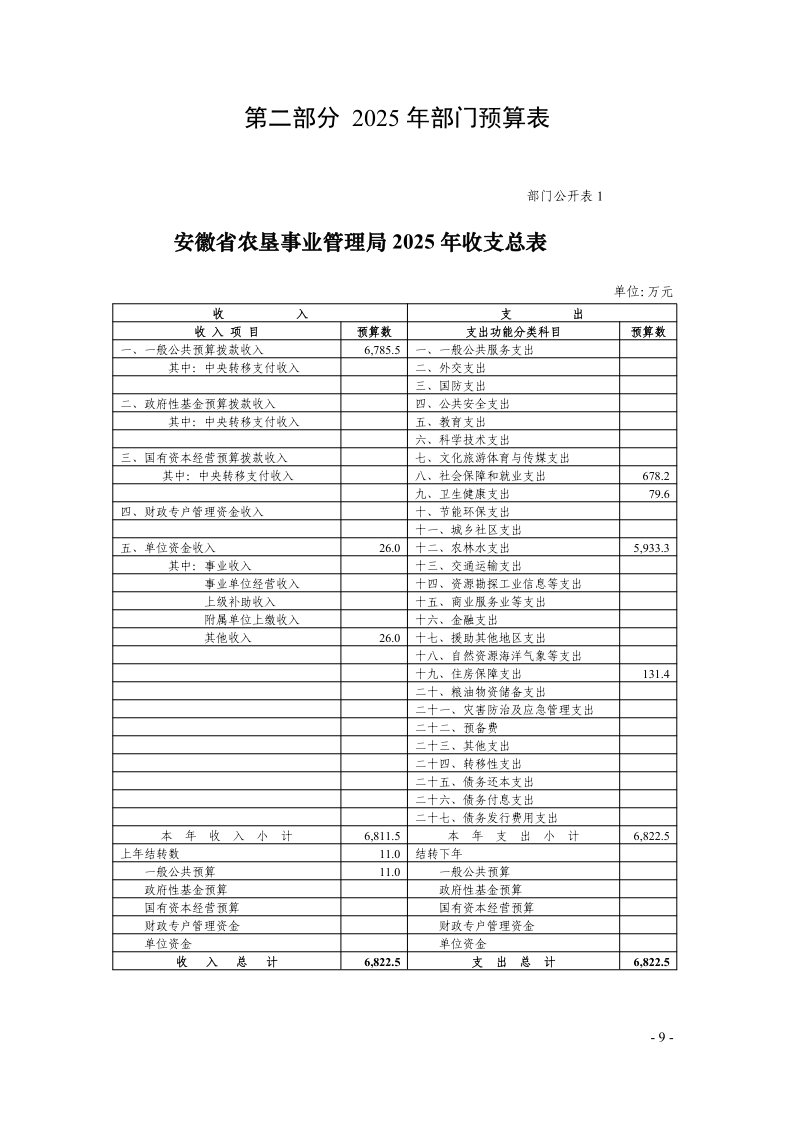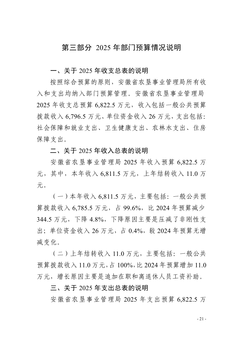 安徽农垦集团:安徽省农垦事业管理局2025年部门预算.pdf