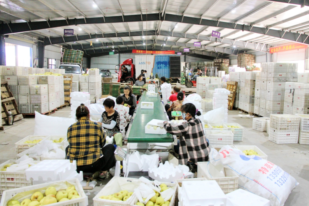 图为皖垦果业公司包装库内职工正在包装“翡翠”酥梨