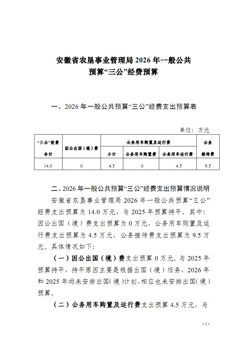 安徽省农垦事业管理局2026年一般公共预算“三公”经费预算.pdf