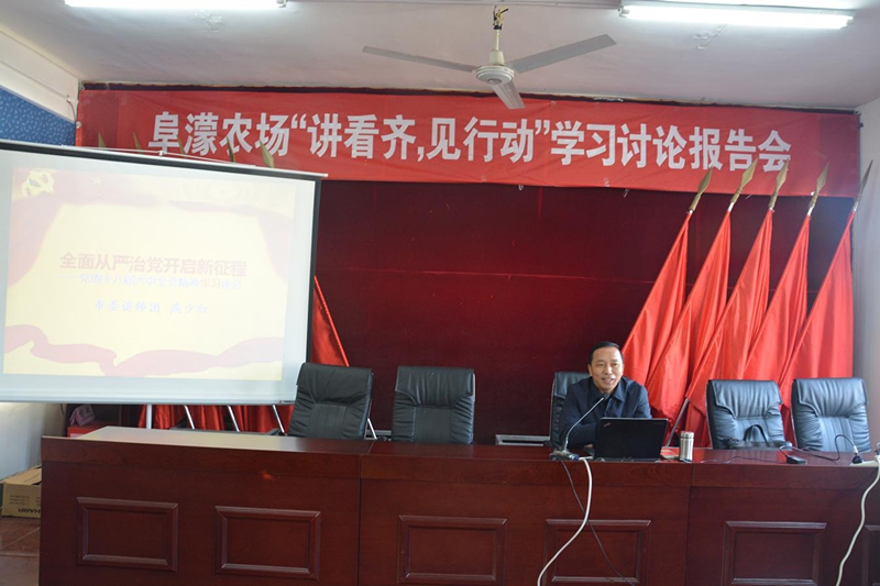 1月20日,阜濛农场举办“讲看齐、见行动”学习讨论报告会,特邀阜阳市委讲师团团长燕少红教授为全场党员干部作了题为《全面从严治党,开启新征程》的宣讲报告。
