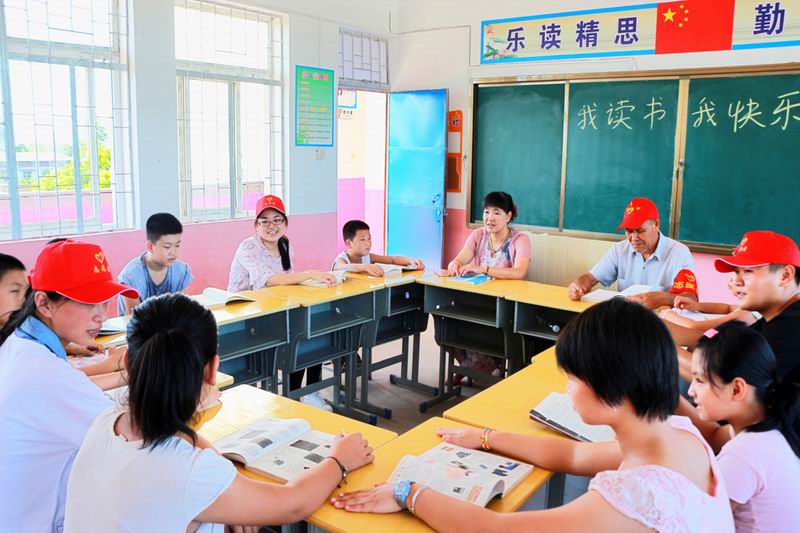 为迎接新学年的到来,唤起少年儿童对读书的热爱并养成良好阅读习惯,华阳河一场关工委请来4名大学生志愿者,于8月28日在小学举办“我读书,我快乐”主题读书交流活动。