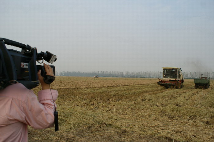 随着安徽农垦大圹圩农场水稻收获入库,旗下龙头企业倮倮米业公司开始加工新谷生产质量可追溯大米。11月2日,安徽电视台及滁州电视台新闻摄制组前来对倮倮大米质量可追溯生产情况和农场盛大的水稻丰收场景进行实地拍摄采访。