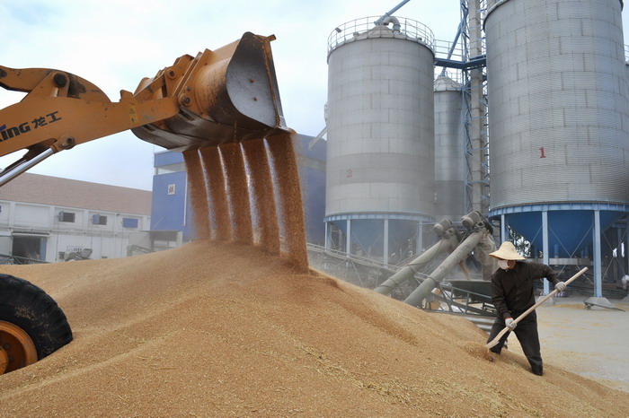 6月15日,在地处明光市的安徽农垦潘村湖农场种子加工中心,工人正在清选小麦种子粮。作为全省最大小麦种子繁育基地,今年该农场3.2万亩小麦原种喜获丰收,平均单产达到1150斤。农场开足10条加工线,加紧清选烘干,目前已入库优质小麦种子3600万斤。(安徽日报6月19日A1版 杨登宏 摄)