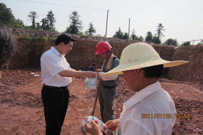 专项检查组深入廉租房建设工地,实地指导施工人员做好防暑降温工作,马振辉代表场党委对坚持高温作业的工作人员表示慰问,并发放了防暑降温用品。
