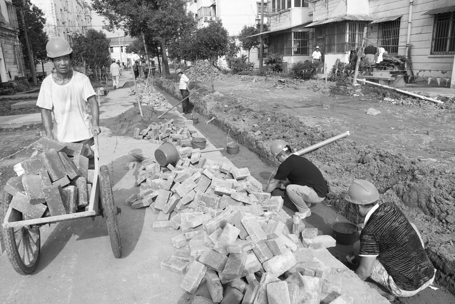 7月31日,安徽农垦华阳河农场小区物业改造工程正在紧张实施。连日来,该农场15个居民小区、7867户居民家庭物业改造全面展开,修建停车位,房屋、下水道维修,道路、绿化带、雨污分离管网等综合治理,提升小区基础设施水平。本报通讯员 李龙 摄 (安徽日报 8月14日 2版)