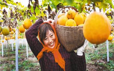 近年来,安徽省大圹圩农场在搞好粮食生产的同时,瞄准市场大力发展高效特色农业,今年种植的160多亩瓜蒌、380多亩茭白套养泥鳅喜获丰收,预计年收益超过140万元。图为大圹圩农场职工在收获金黄色的瓜蒌。(人民日报 2017年12月3日10版,李炳旺、刘延摄影报道)