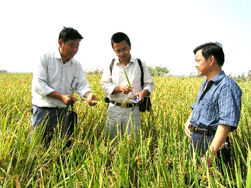 省农科院科技人员在潘村湖农场指导旱稻生产