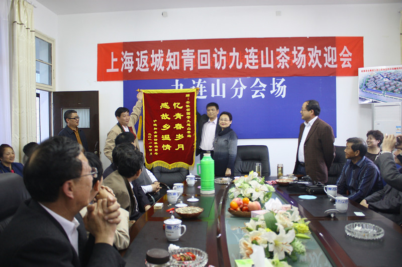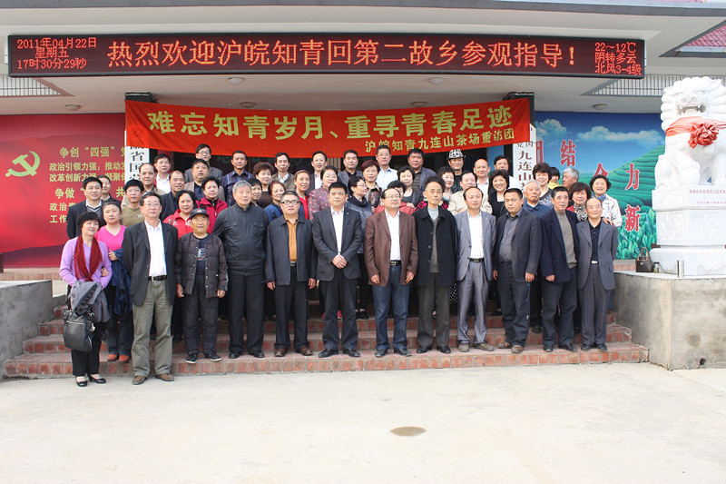 沪皖知青代表将一面书写着“忆青春岁月、感故乡温情”的锦旗赠送给茶场以表留念。茶场老同志蒋浩田即兴赋诗词一首:最忆是“知青”,昔日同心建茶场,血汗共铸真挚情,能不忆旧情。四十年后重聚首,各自儿孙绕膝行,时变迁,友谊存,相见无语泪满襟,常相聚,返故园,回忆使人变年轻,他年若再重会面,必然是,满目青山夕照明。