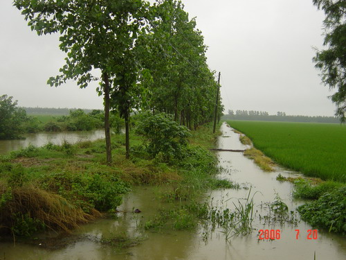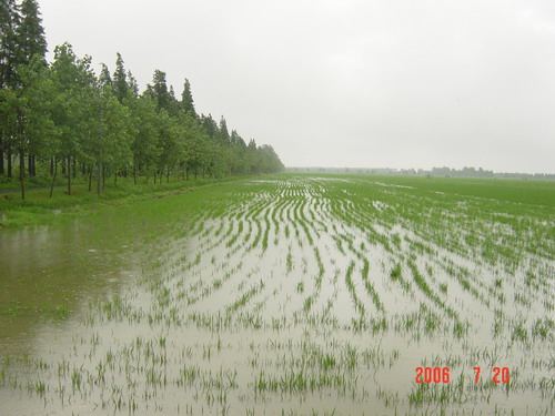7月20 日上午7时30分至10时30分大圹圩农场再遭强降雨袭击 ,短短3小时降雨近100毫米,由于短时间内降雨过于集中,雨量太大,致使部分低洼地区的秧田被淹, 农场4个排涝总站和部分分场泵站在第一时间全力进行抢排,力争将灾害造成的损失降到最低限度。