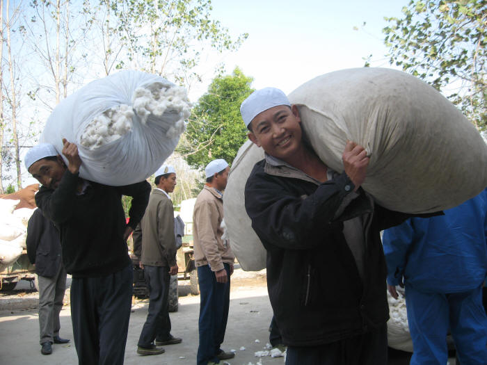 安庆市青怡针纺织品公司是全国少数族民族特需产品定点生产企业,企业在劳动用工中一直优先录用回族员工。今年该企业在农场收购棉花时,为三益回民分场优质棉生产基地打开“绿色通道”,对回族棉农交售的棉花,凡符合标准的优质棉,每市斤补贴5分钱,全部实行现金结算,不打白条,此举受到当地回族棉农好评,11月6日,收购点回族棉农交售的优质棉每市斤达3.53元左右。图为三益回民正在交售新棉,喜悦之情溢于言表。
