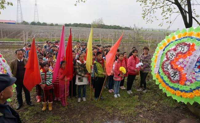 清明节前夕,华阳河总场小学120多名少先队员在学校老师、场关工委及场直社区领导率领下,步行到二分场郑培志烈士墓前,举行了“以烈士为榜样,做合格接班人”的祭扫活动,排着整齐的队列、怀着崇敬的心情缅怀英烈。