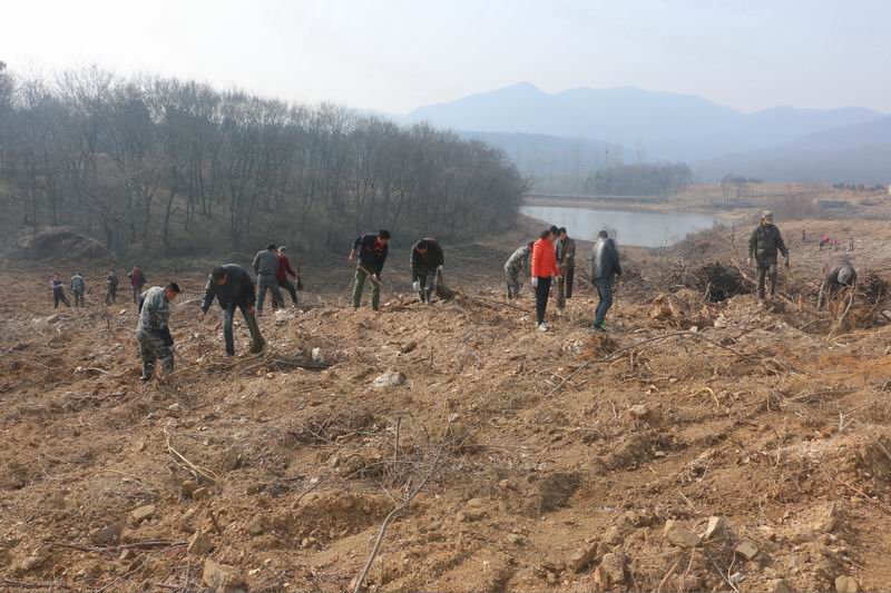 阳春三月,春光明媚老嘉山。近日,在白米山农场月牙湖水库坡地,场领导邱达、张华平、王阳春、王仕超、周尤马率机关及分场干部、护林员共60多人到这里参加义务植树。