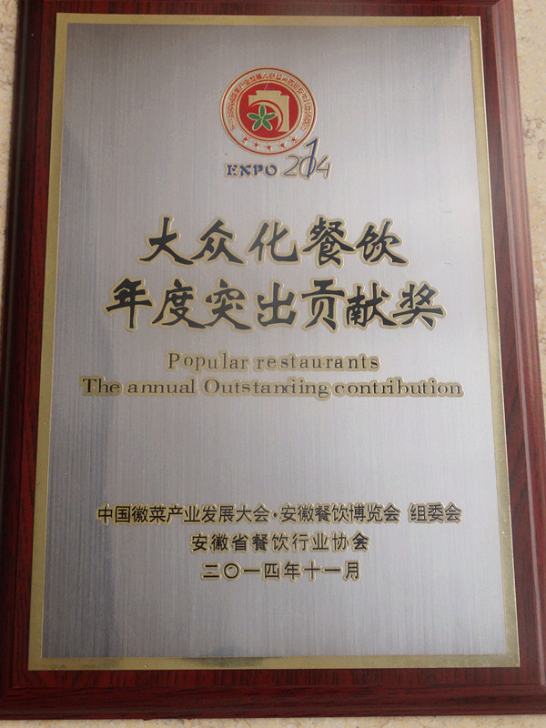 第三届中国徽菜产业发展大会暨第四届安徽餐饮博览会于近日召开,大会主题是“产业化、大众化、品牌化、信息化”, 来自北京、上海、江苏、浙江、安徽等省市近600名企业家参会。黄山大厦KK快餐公司总经理王敏在会上荣膺“大众化餐饮2014年度突出贡献奖”。