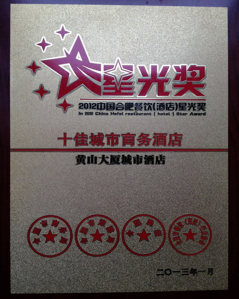 日前,由合肥市商务局、旅游局、餐饮(烹饪)行业协会、合肥晚报联合举办的星光奖颁奖典礼隆重举行,安徽农垦黄山大厦荣获合肥“十佳城市商务酒店”称号。