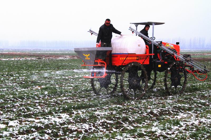 2月8日,安徽农垦龙亢农场一家庭农场职工正在冒雪用高地隙植保机给小麦追施促壮肥。目前,该农场抢抓农时,组织开展小麦开春田管。截至当晚,全场3.5万亩小麦全部追施了促壮肥,达到了促壮、促分蘖的作用,为小麦丰产打下坚实基础。(安徽日报2017年2月10日02版,李峰摄)